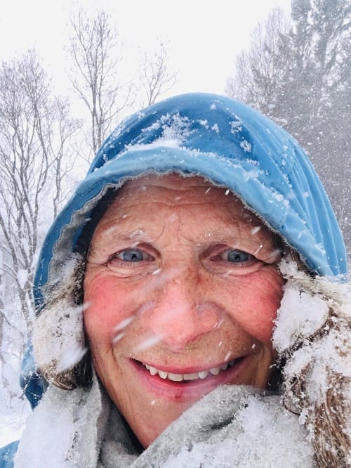 Julie Maske (f. 1965) er mangeårig journalist i Fjell og Vidde, Den Norske Turistforeningens medlemsblad. Hun har gått på ski over Grønland og klatret i Andesfjellene, og har over 20 års erfaring med å ferdes ute med barn, mann og hund.