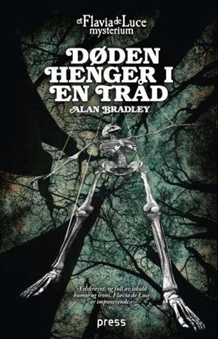 Flavia de Luce hadde ikke planlagt å etterforske flere mord. Men så hadde heller ikke Rupert Porson planlagt å dø. Hadde dukkemesteren endt med å filtre seg inn i sine egne tråder? Eller hadde den grufulle ulykken forbindelser tilbake til andre dystre hendelser, skjult under overflaten i den idylliske engelske landsbyen Bishop’s Lacey? Døden henger i en tråd er den andre boken i suksesserien om Flavia de Luce: krimhistoriens skarpeste og skumleste 11-åring, en urovekkende småjente som i beste Agatha Christie-stil ser tvers gjennom fasadene i det engelske landsbylivet. I oppfølgeren til den internasjonale bestselgeren Det søte i bunnen i kaken må Flavia bruke alle sine evner for å komme på sporet av en mørk og gåtefull skikkelse, som trekker i snorene i en dødsdans som til slutt truer med å innhente også Flavia selv.